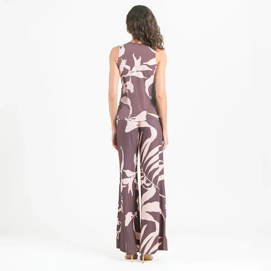 Clara Sunwoo - T49P36 - Sleeveless V-Neck Center Front Tie Top, Floral Stem: Pink/Coco / M