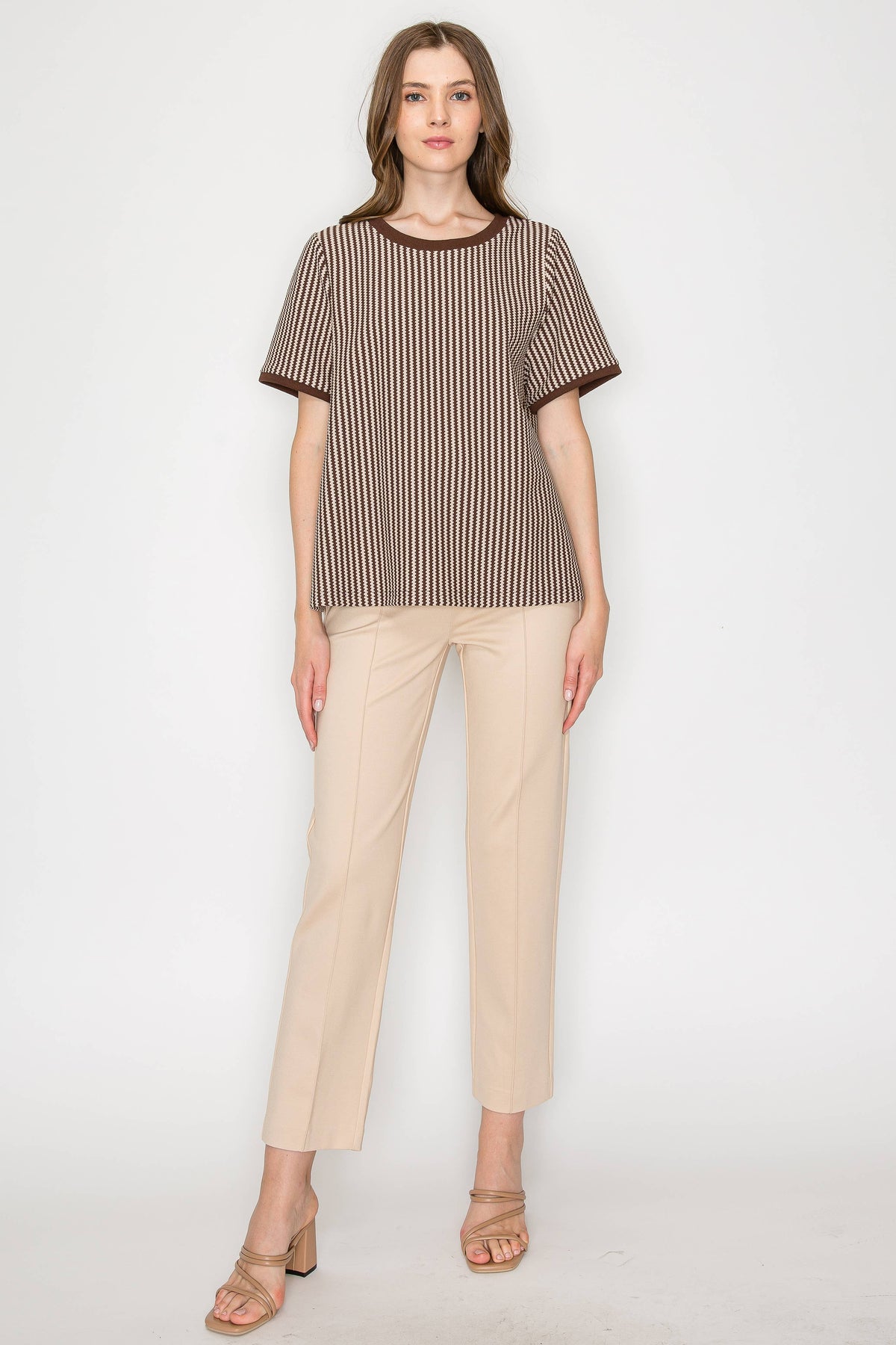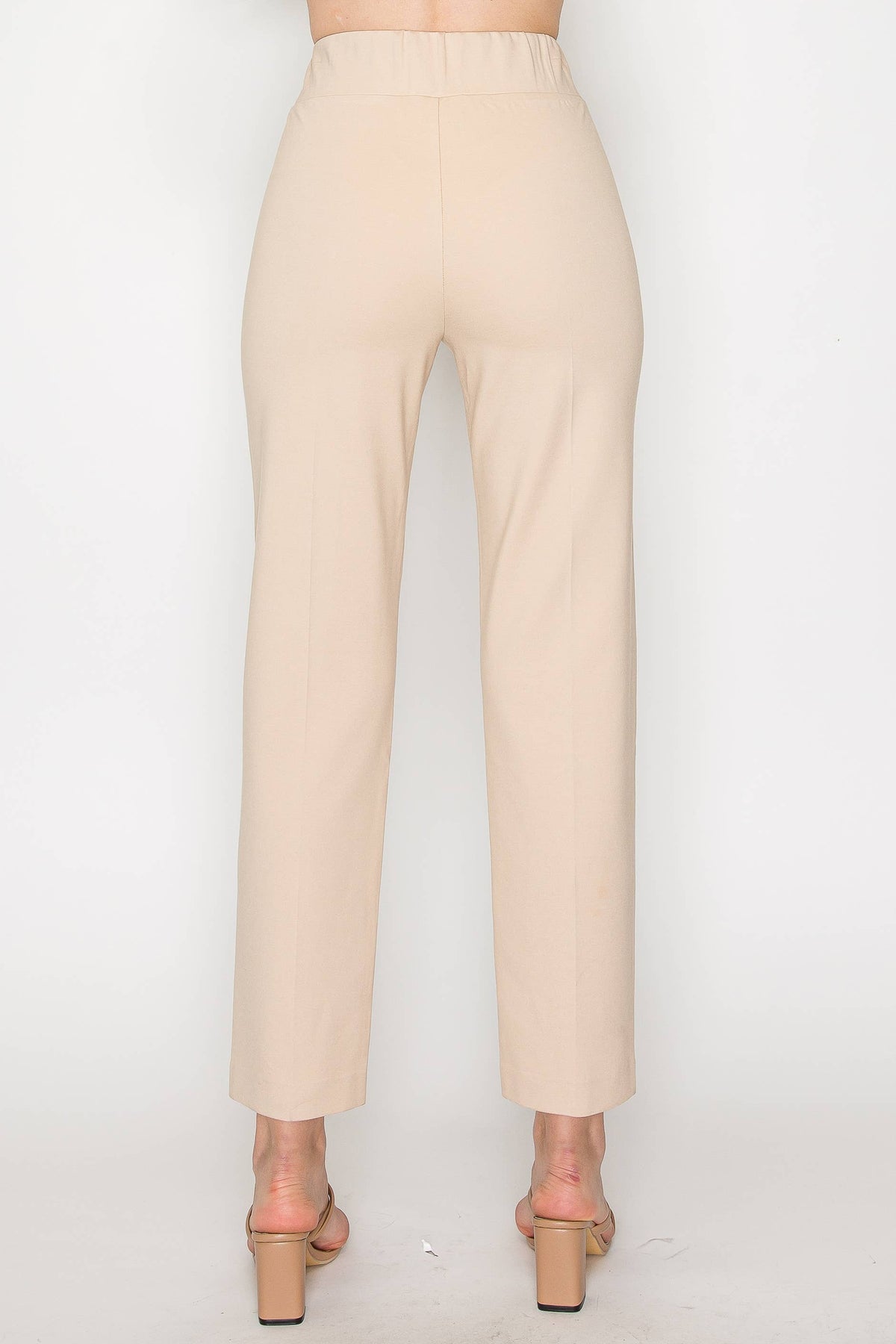 The Paul Pant. A chic casual solid color ankle pant. Perfect for office wear or casual everyday. Front seam detail. Elastic waist. Skinny pant. Stylist and comfort. NOTE: This pant can be worn 2 different ways, if you would like a more tight fitted legging style please order your usual size. If you would like a straight leg pant, please order a size up Style this top with the matching: Karissa Top (Style #35707K) Wynn Top ( Style # 33134W)