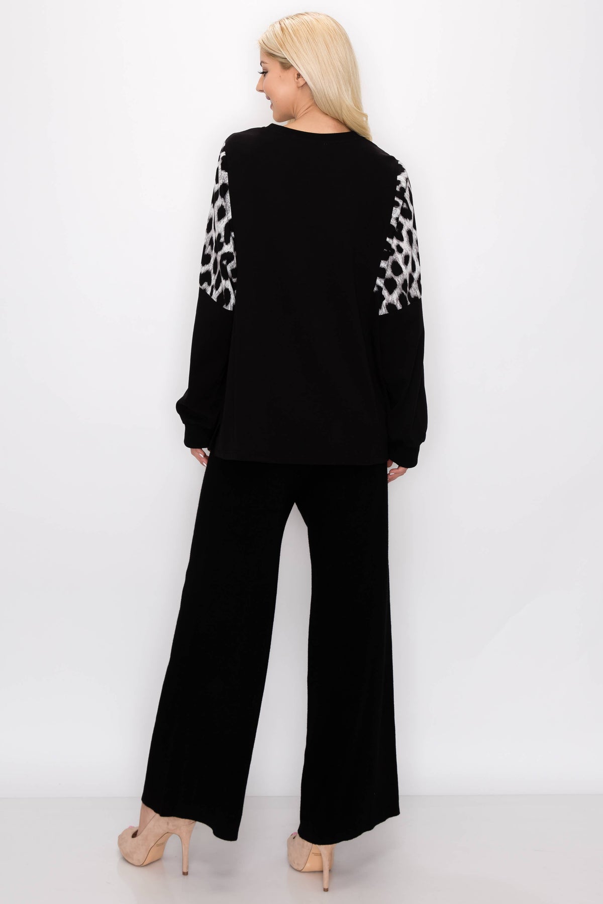 The Reese top. Made with high quality pointe rayon knit. Mixed with animal print in the shoulders & sleeves. So soft and comfy. Round neck and long sleeves. Easy relax fit. Perfect everyday wear.